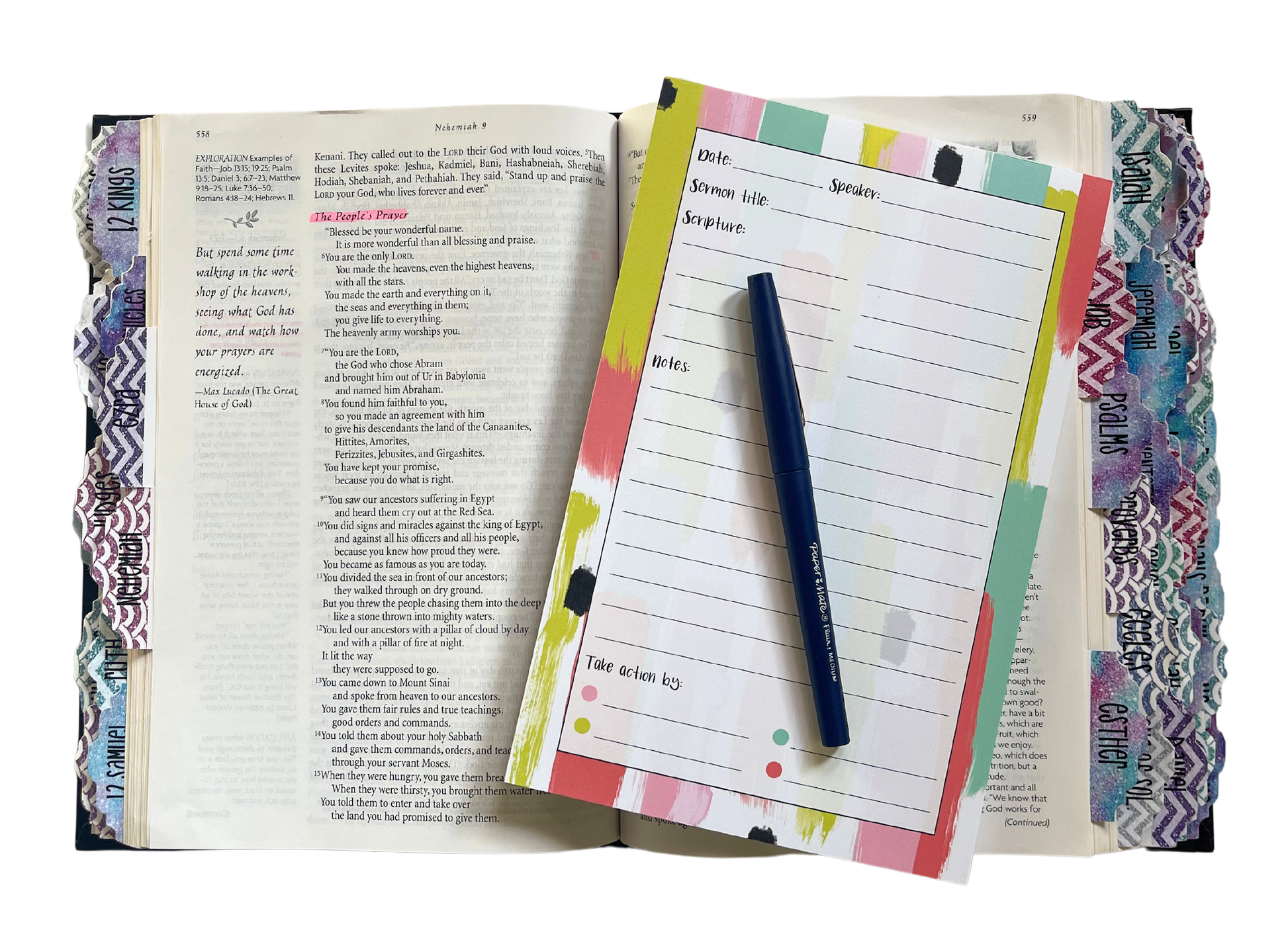 Keep track of sermon notes, scripture, speakers and ways you can take action each week to spread the word of God.